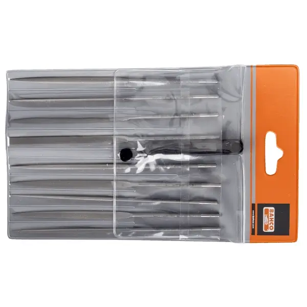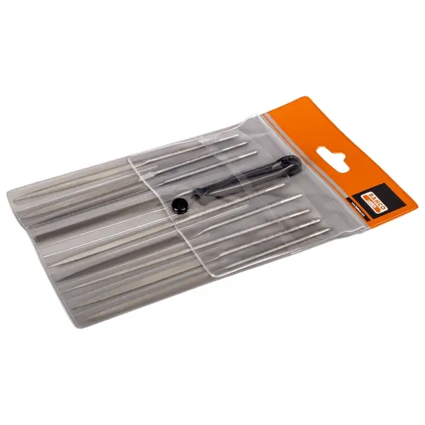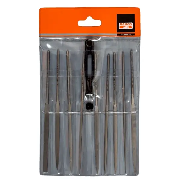针锉套装,双刃型(次刃),用于精细锉削和抛光作业,总长160毫米,含9件及1个手柄,配塑料收纳袋