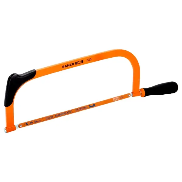 工具箱尺寸迷你弓锯,长度320毫米,适用于水电工,配备两种锯片:干燥木材切割锯片及Sandflex双金属弓锯片(24齿/英寸),专为金属切割设计