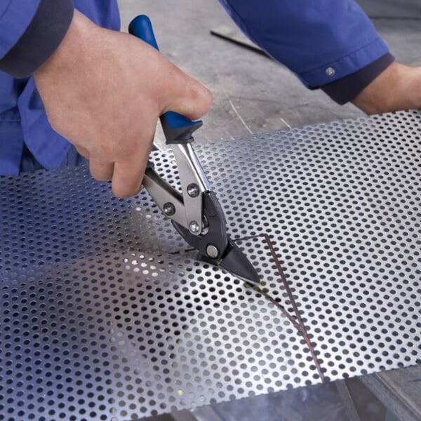 连续剪切剪刀,适用于连续直线及弧形切割,右剪版本,软质塑料涂层手柄,刀片长度27毫米,可剪切1.2毫米厚板材,总长度230毫米