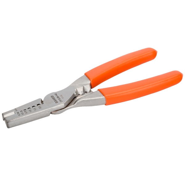 带剥线功能的压接钳,适用于圆形电缆连接器(0.25-2.5平方毫米),PVC包覆手柄,长度140毫米