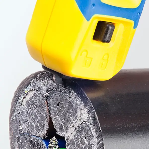 Cable knife with locking switch for protective the hook blade, cutting depth adjustable and automatic adjustment to round and longitudinal cut, soft grip ensures optimal use of hand strength suitable for round cables diameter 8 – 35 mm