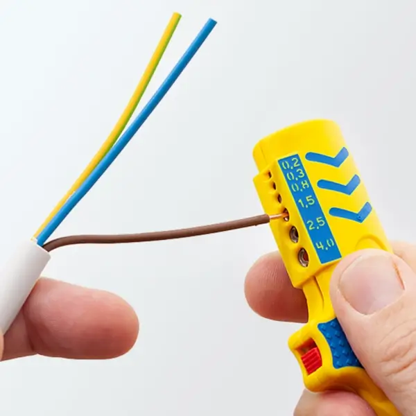 Cable stripper with TiN-coated blades longer service life integrated cable guide for quick and uncomplicated longitudinal cutting suitable for all common round cables with a diameter 4 – 13 mm and flat cable max 12 mm