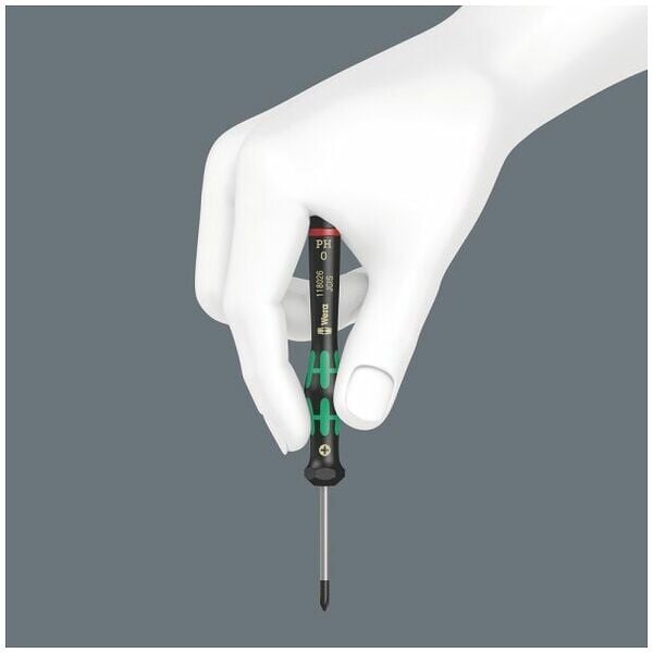 精密一字螺丝刀,配有人体工学Kraftform Micro手柄和防滚保护功能,刀片长度60毫米,手柄长度97毫米,规格0.23 x 1.5毫米