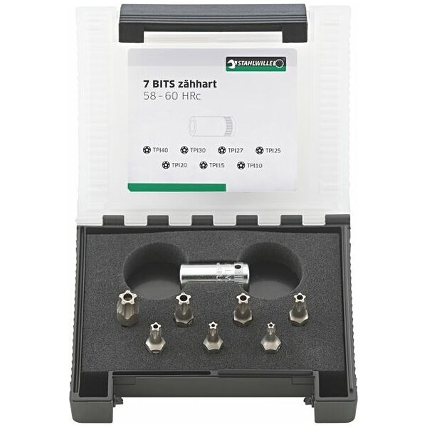 Bit-Check 包含 29 件带 BiTorsion 区域以吸收峰值负荷的螺丝刀头和带 Rapidaptor 通用刀头架的钻石涂层刀头 PH/PZ/TX/SL (C6.3)