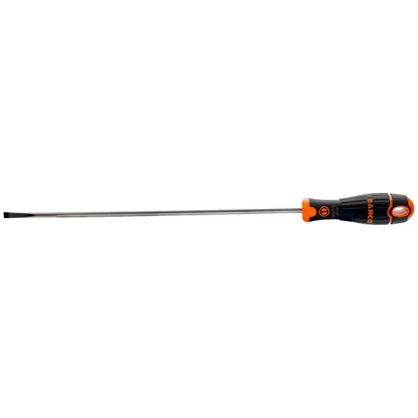人体工学槽口螺丝刀,采用高性能合金钢镀铬工艺,工具寿命长久。软质材料手柄设计,提供卓越抓握力与更强劲的力传递效果。刀片长度175毫米,规格1.6×8毫米。