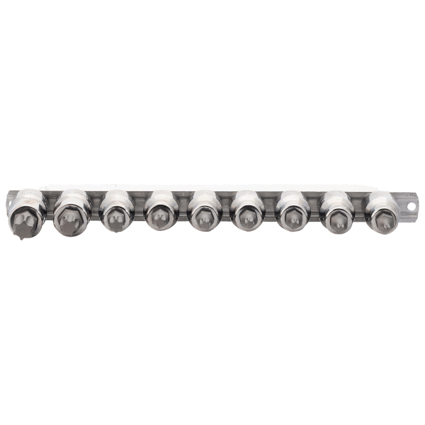 双六角套筒 1/2 英寸方头 镀铬抛光 12 点牵引轮廓 尺寸 10-32 毫米 带延长杆、万向节和可逆棘轮 25 件,带软泡沫内衬 安全插入系统 (SIS) 塑料盒