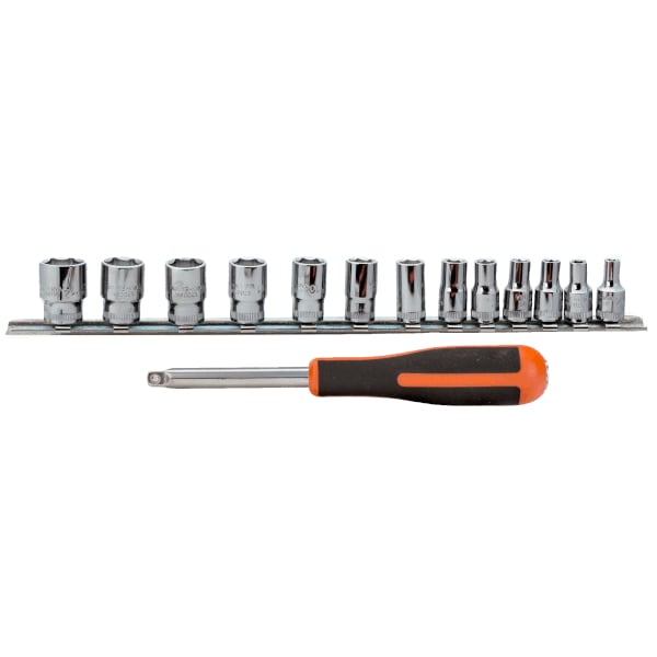 六角套筒 1/4 英寸方形驱动头 5.5-14 毫米及各种螺丝刀头,带延长杆、旋转器和 HiPer 细齿可逆棘轮,38 件,带软泡沫内衬安全插入系统 (SIS),塑料盒装