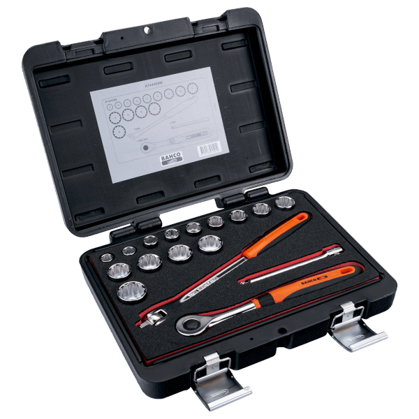 Zyklop 金属棘轮扳手 3/8 英寸,带推入式方头,76 齿,含 8-19 毫米六角套筒、延长杆和螺丝刀头,共 29 件,装于高强度紧凑型纺织品盒中