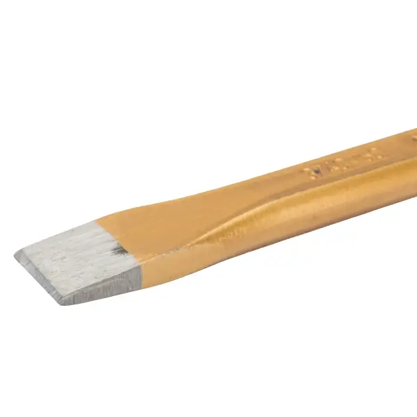 平口凿 扁椭圆柄 23 x 13 毫米 带安全冲击头 由高性能合金钢制成 涂有铜色漆面 总长度 250 毫米 刃口宽度 25 毫米