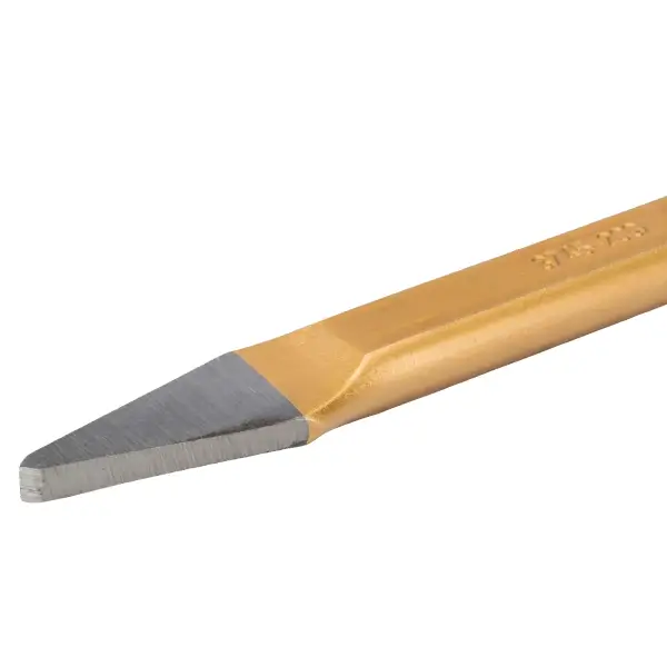 冷钝凿 扁平椭圆柄 17 x 11 毫米 带安全冲击头 由高性能合金钢制成 涂有铜色漆面 总长度 175 毫米 尖端宽度 7 毫米