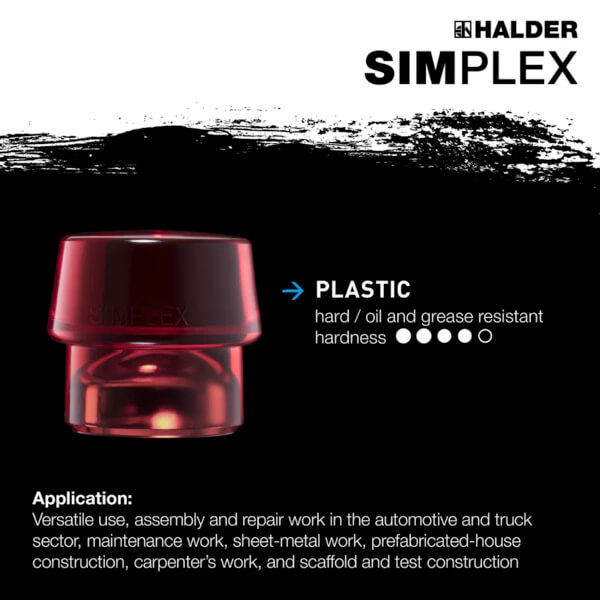 SIMPLEX软面锤 红色塑料嵌件 硬质,耐油耐脂 铝制外壳与木柄 锤柄长度370毫米 锤头直径50毫米