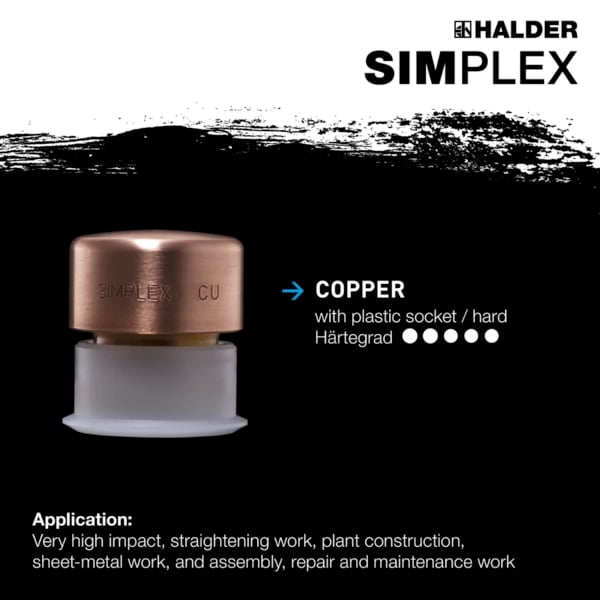 SIMPLEX铜芯锤头,极硬材质,超高冲击力,替代传统软面锤用铜锤,锤头直径30毫米