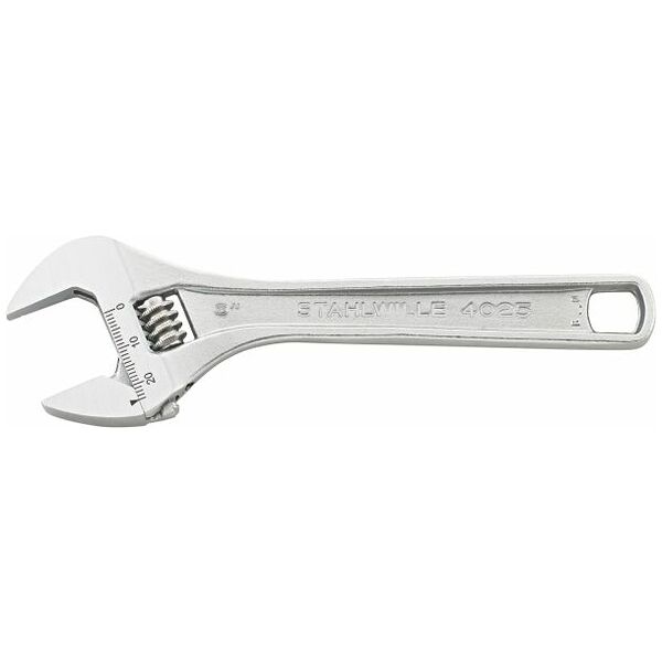 带刻度可调开口扳手,铬合金钢材质,镀铬处理,最大开口宽度39毫米,总长311毫米,尺寸12英寸