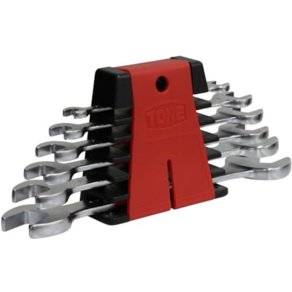 六角扳手,采用结构钢镜面缎面处理,弧形设计,手感舒适,6件装塑料扳手架,尺寸8-26毫米