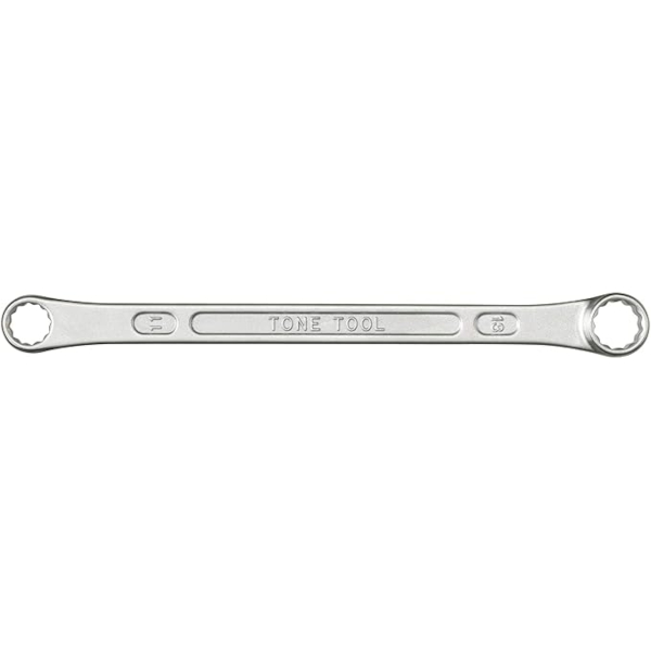 长柄直式双环扳手,适用于高度受限及狭窄空间,采用结构钢材质,镜面哑光处理,长度193毫米,尺寸11×13毫米