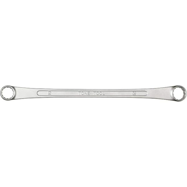 长柄双环扳手,15度偏角设计,适用于高度受限的狭窄空间,采用结构钢材质,镜面拉丝工艺,长度328毫米,尺寸19×21毫米
