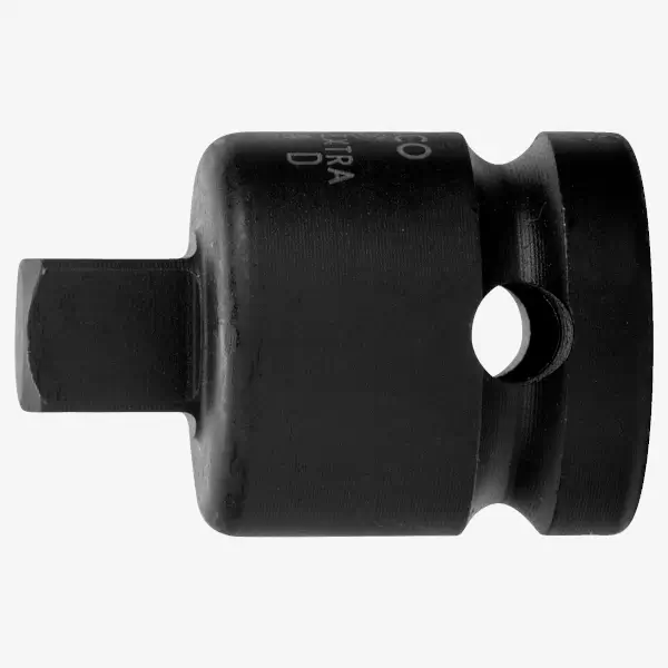 冲击减震接头,采用高性能合金钢磷化处理,带用于锁定销或安全弹簧的孔,总长35毫米,将1/2英寸减至3/8英寸