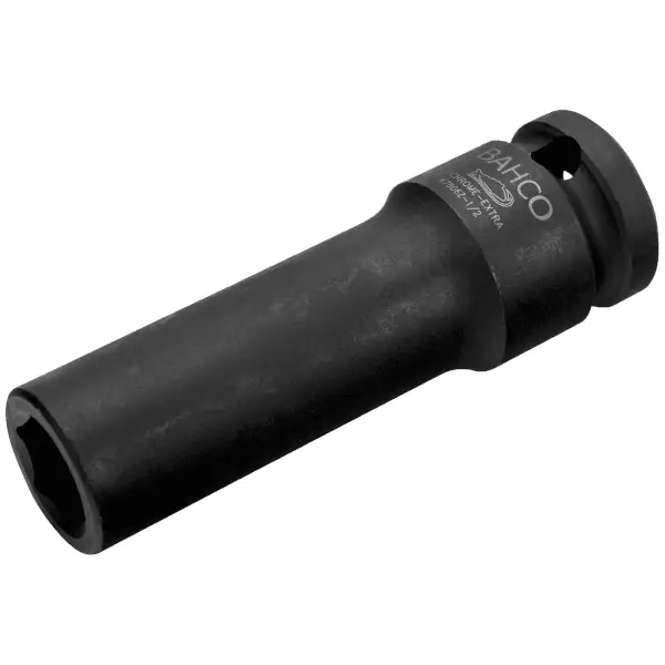 长型冲击六角套筒 1/2 英寸方头,动态驱动型材,由高性能合金钢制成,磷酸盐涂层,带用于锁定销或安全弹簧的孔,总长度 78 毫米,尺寸 3/8 英寸