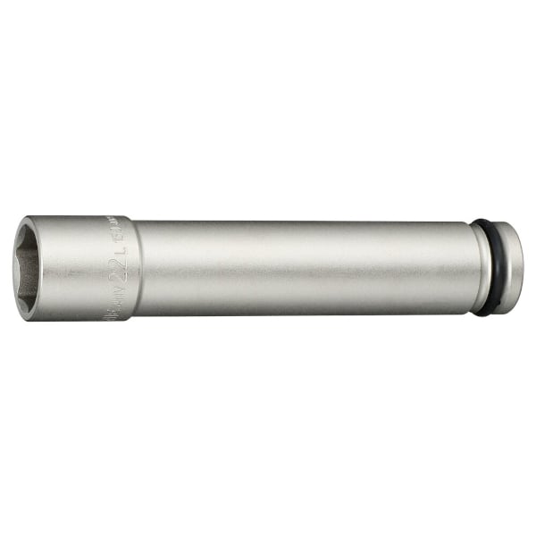 超长冲击六角套筒 1/2 英寸方头 采用结构钢材质,无电镀处理,提升外观质量和防锈性能 长度 150 毫米 尺寸 22 毫米