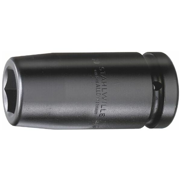 长型冲击六角套筒,1英寸方头驱动,采用优质铬合金钢,枪灰色表面处理,经油淬火硬化以防止应力与变形,长度110毫米,尺寸24毫米
