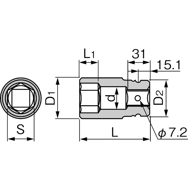长冲击六角套筒 1 英寸方头 结构钢材质 无电镀处理 提升外观质量和防锈性能 长度 135 毫米 尺寸 77 毫米