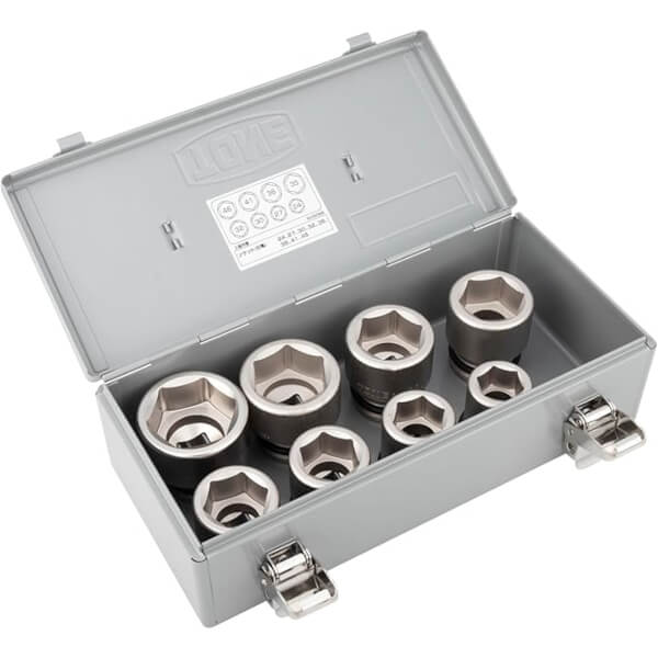 冲击六角套筒 3/4 英寸方头,采用结构钢材质,无电镀处理,外观更美观,防锈性能更佳,8 件,尺寸 24-46 毫米,金属盒包装