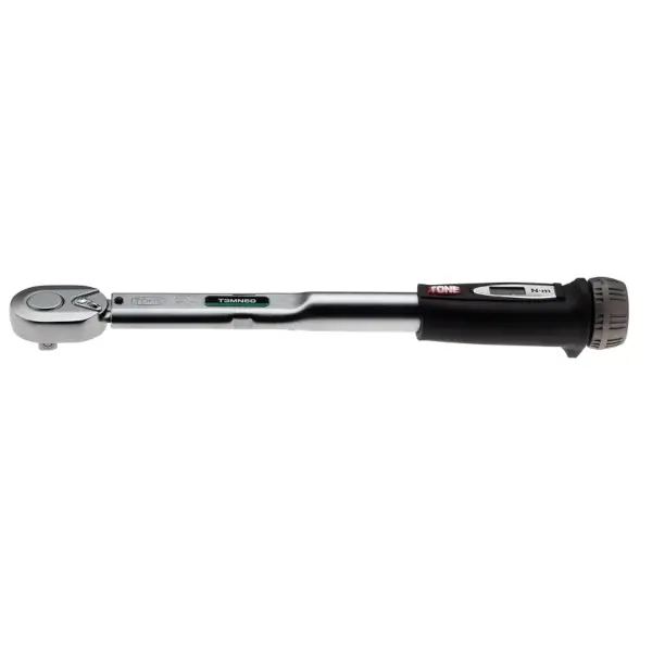 带可逆棘轮的可调扭矩扳手,3/8英寸方头驱动,45齿顺时针扭矩控制,总长360毫米,精度±3%,范围10-50牛米(8-36磅-英尺)