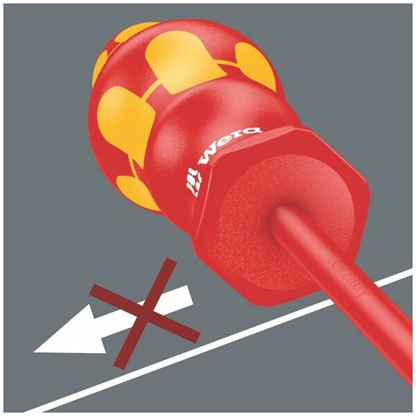 高端刀头螺丝刀,适用于Wera可更换六角刀头(9毫米规格),配备绝缘Kraftform手柄,安全工作电压达1000伏,总长98毫米,符合VDE标准