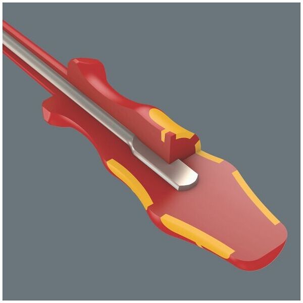 高端刀头螺丝刀,适用于Wera可更换六角刀头(9毫米规格),配备绝缘Kraftform手柄,安全工作电压达1000伏,总长98毫米,符合VDE标准