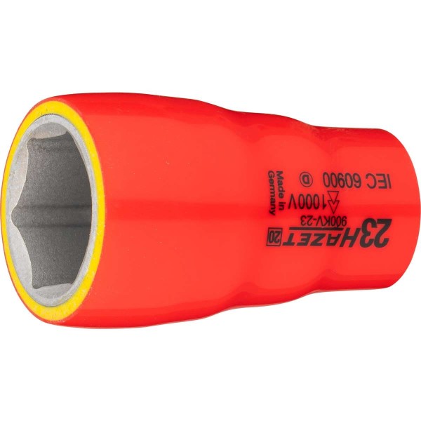 六角套筒,1/2英寸方头,带1000伏防护绝缘,确保安全无风险操作,总长57.5毫米,六点牵引轮廓,尺寸23毫米,VDE认证