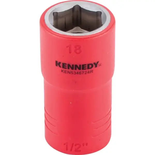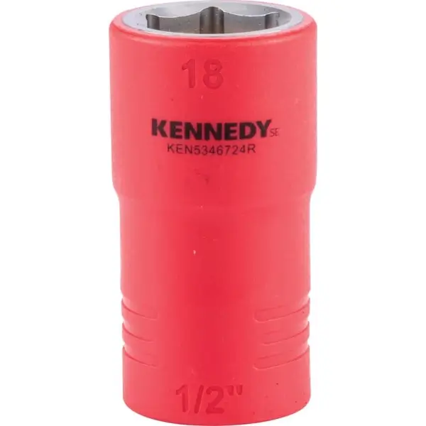 Insulated hexagon socket with a 1/2-inch square drive made of high-strength chrome vanadium steel and finished with durable insulation, excellent electrical protection improves user safety, size 18 mm VDE certified