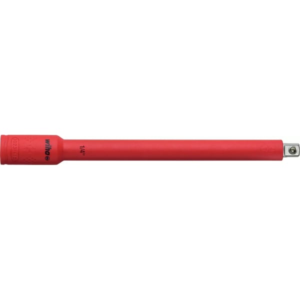 1/4英寸方形驱动套筒延长杆,采用优质绝缘钢材制造,确保在高达1000伏交流电带电部件上安全作业,总长度150毫米,符合VDE标准