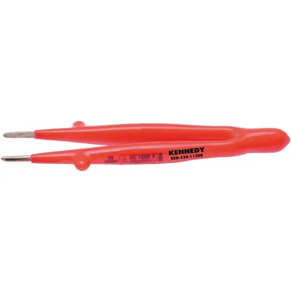 Insulated straight-nose tweezers have serrated gripping surfaces and are made of high-quality stainless steel. With an overall length of 145 mm ideal for safe electrical applications up to 1000 V. VDE